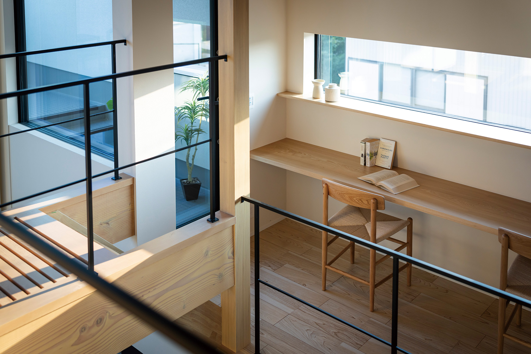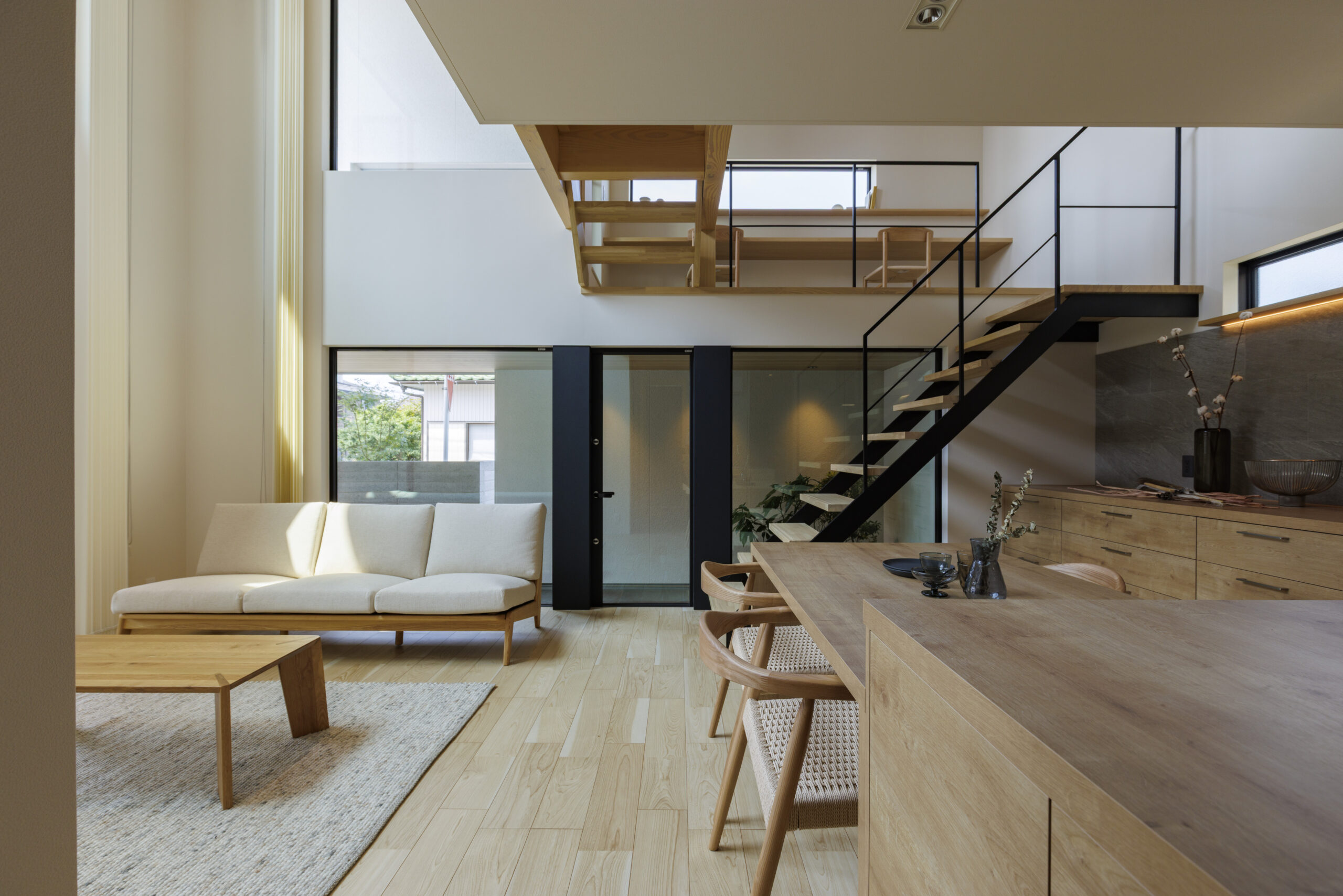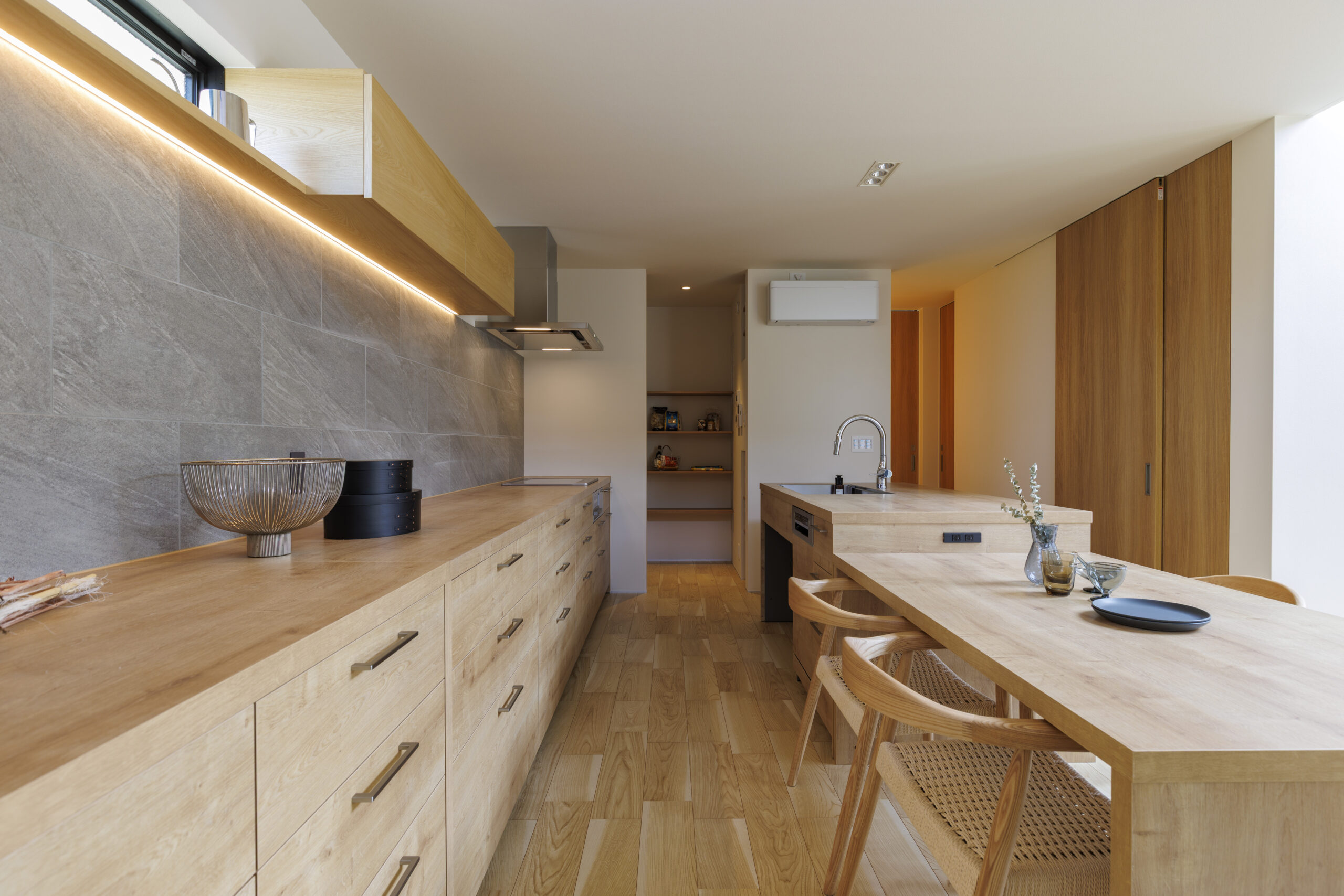 ぬくもりやリラックス感を大切にしたい室内には、木目をふんだんに使ったナチュラルな雰囲気。手に触れたときのやさしさや、時間とともに深まる味わいが、日々の暮らしに心地よさをもたらします。